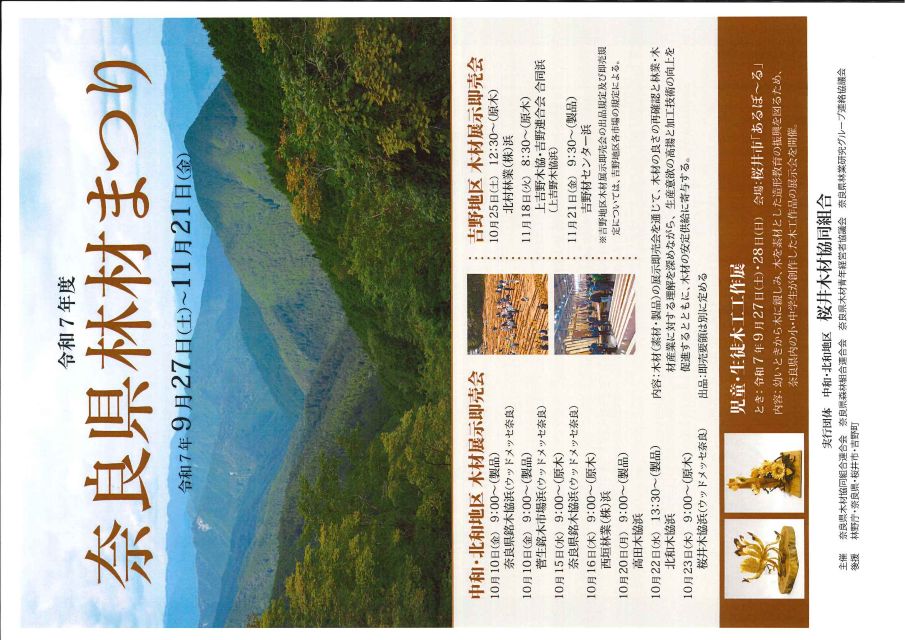 9月27日(土)より奈良県林材まつりが開催されます。